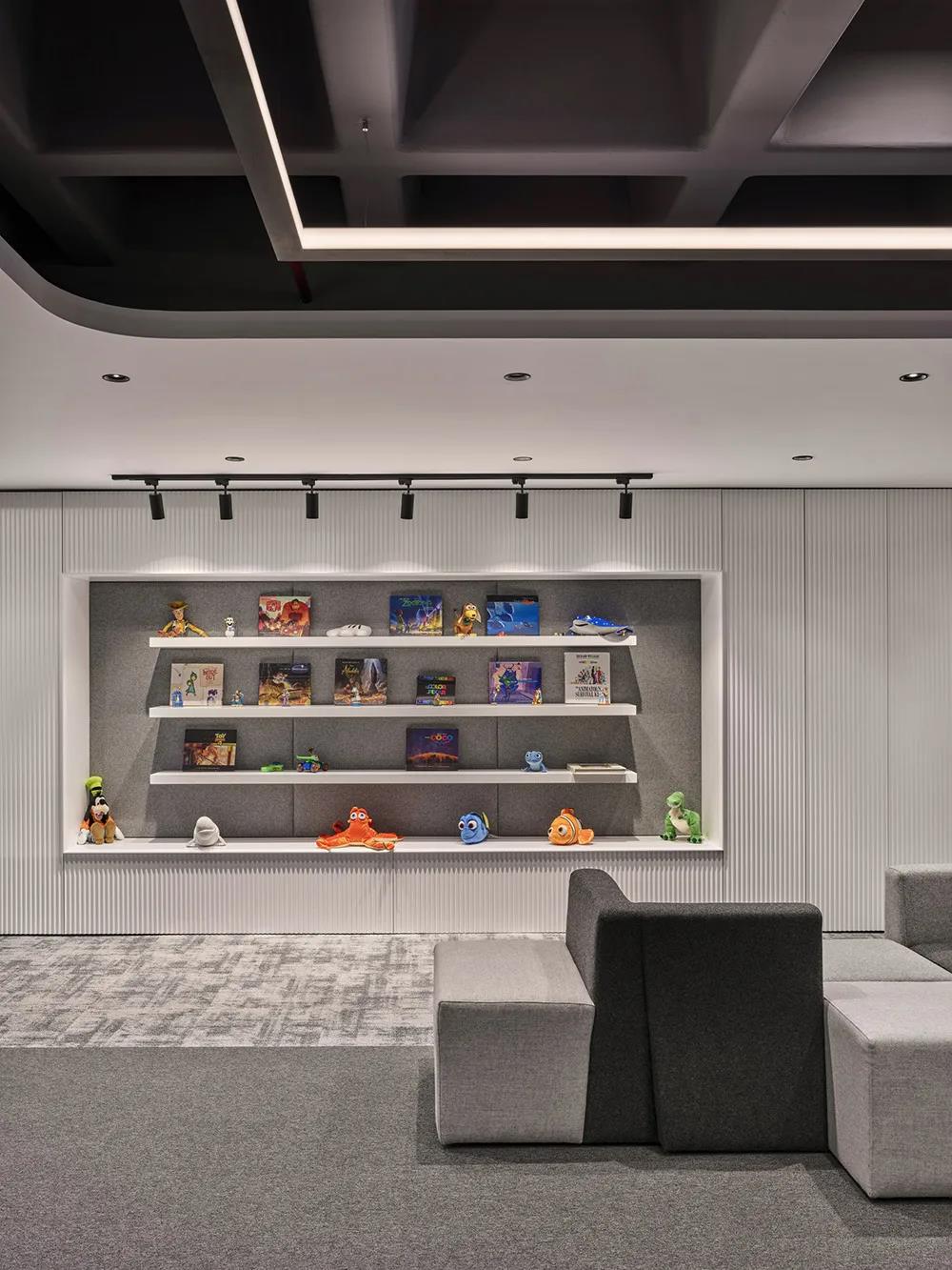 開放的會議空間、巨大的白板墻、自助餐廳和娛樂區可以有效促進和鼓勵團隊互動與合作;還有一些空間里擺放著各種人物、玩具和書籍,這些都來自于員工的喜好和興趣,體現了公司以人為本的企業文化。流行的網絡手機游戲是主打產品。游戲中的模型以雕塑和繪畫的形式展示,就像現代博物館中的藝術品一樣。整個空間設計不僅表達了公司游戲屬性的娛樂性和豐富多彩的一面,也展現了游戲公司的程序和邏輯思維的理性一面。兩者的和諧統一,最終呈現出時尚多元的現代辦公空間。